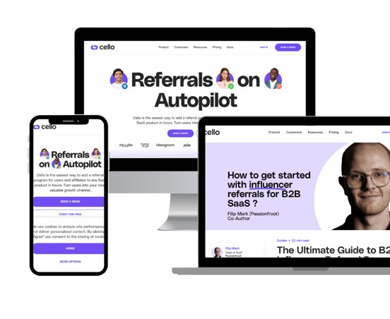Cello is the easiest way to add a referral program for users and affiliates to any SaaS product in hours. Turn users into your most valuable growth channel.