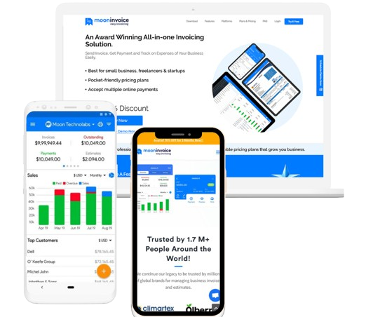 Moon Invoice is an online invoicing application available for different platforms including iOS, Android, Windows, Mac, and Web. It is a complete invoicing solution for small businesses & professionals.